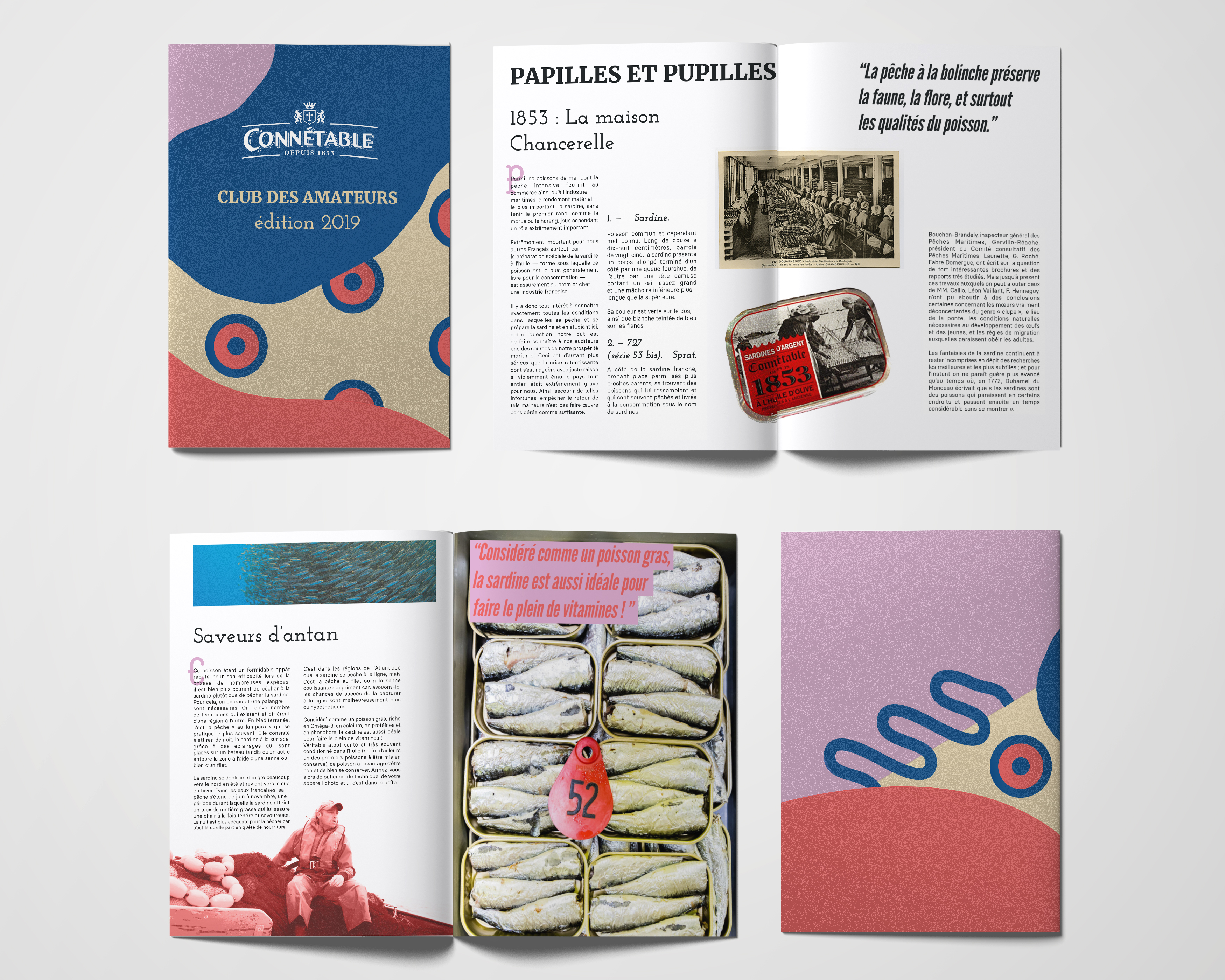 Conception et réalisation de branding pour le lancement du Club des amateurs de sardines par la maison Connétable.
